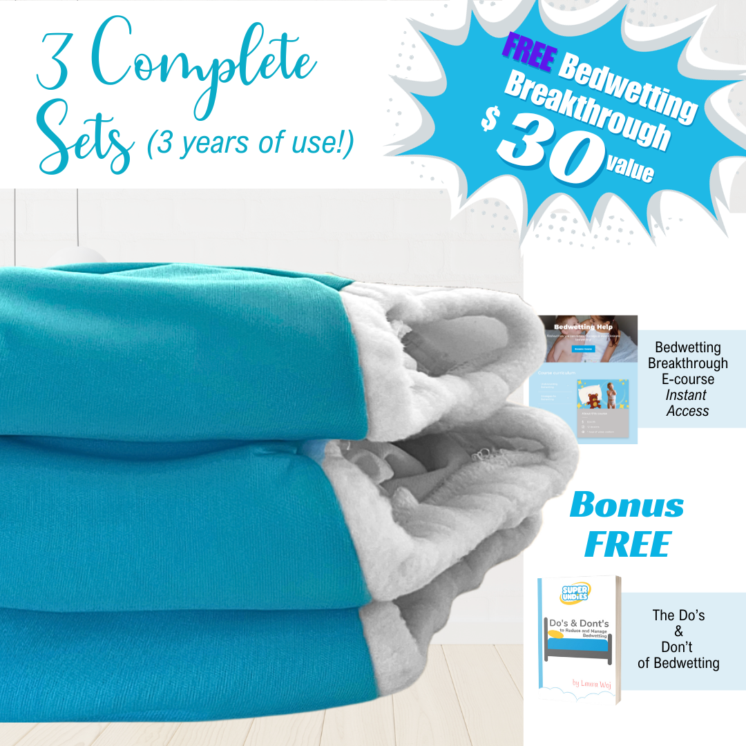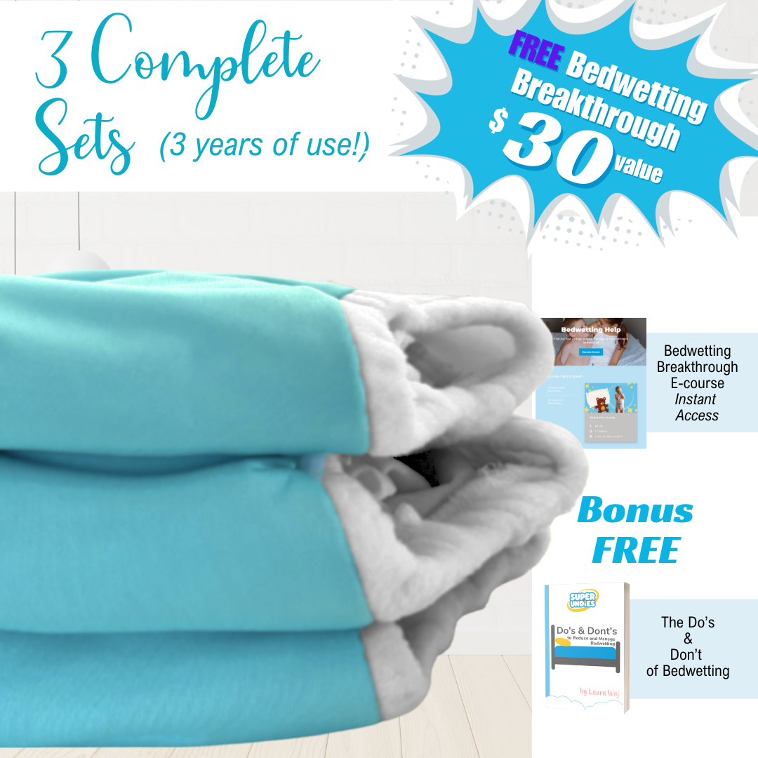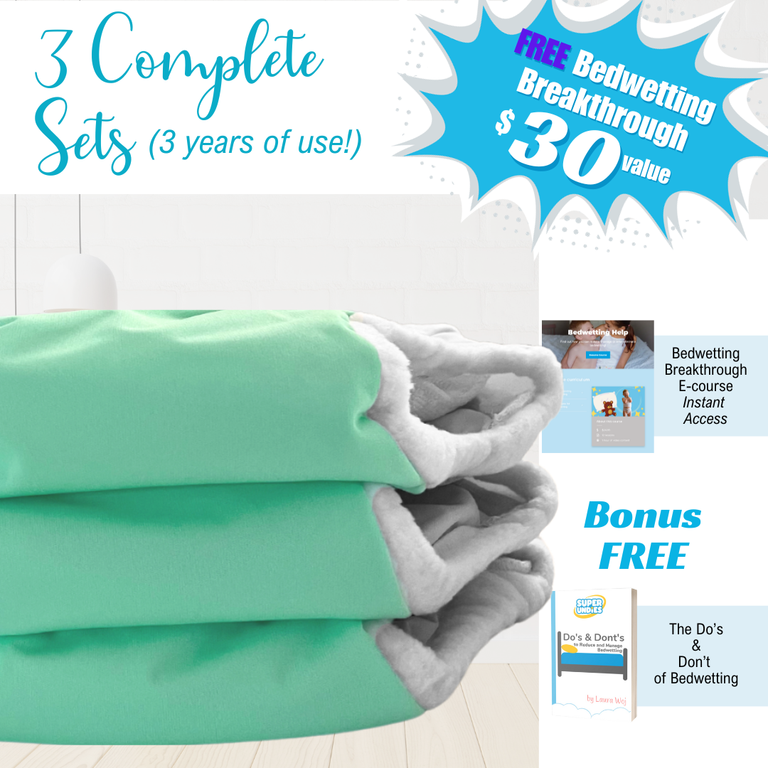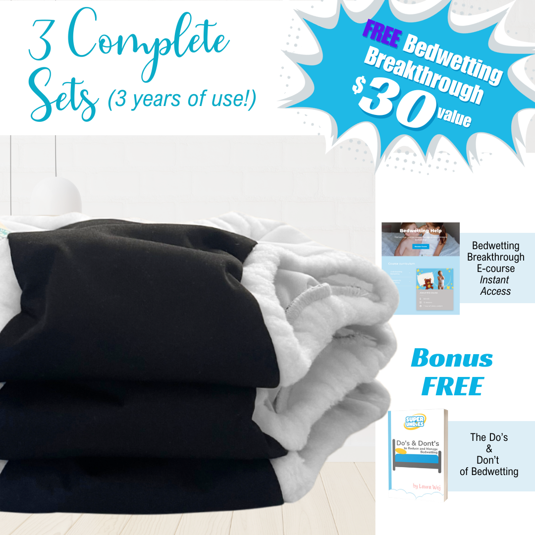 Super Undies new Bedwetting Brain Training Diapers are the best overnight bedwetting option out there. These cozy big kid diapers are Reusable and Washable, saving you money night after night! Every pair of Brain Trainers comes with built-in absorbency and an extra liner, that cleverly allows you to customize how your Undies perform.